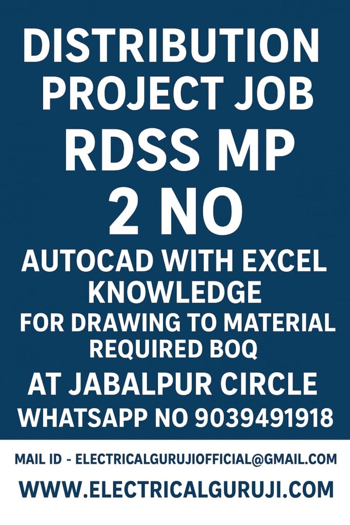 #RDSSProject #JabalpurJobs #AutoCADJobs #ElectricalJobs #MPJobs #EngineeringJobs #BOQ #MaterialPlanning #ExcelJobs #ImmediateJoining #ElectricalGuruJi #DistributionProject